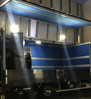 車両内部を”梱包箱”状態に仕上げ、振動・衝撃対策を万全なものとしています。